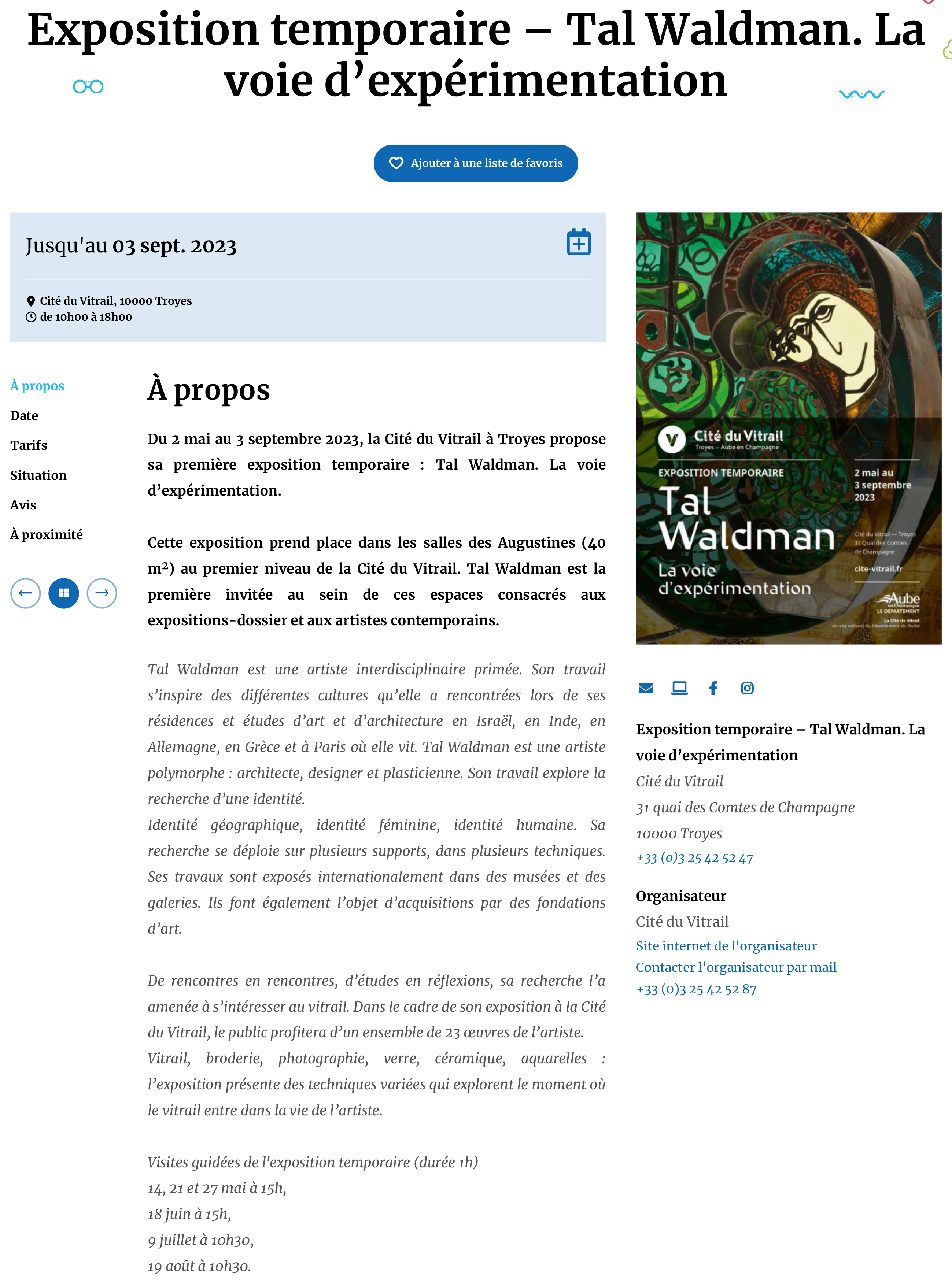 Small issue in HDS on the 4th GLASS BIENNIAL in Colombes, organized by the Museum of Art and History of Colombes, and among the winners of the Call for Creation my stained glass sculpture in 3 dimensions, to see up end of June.